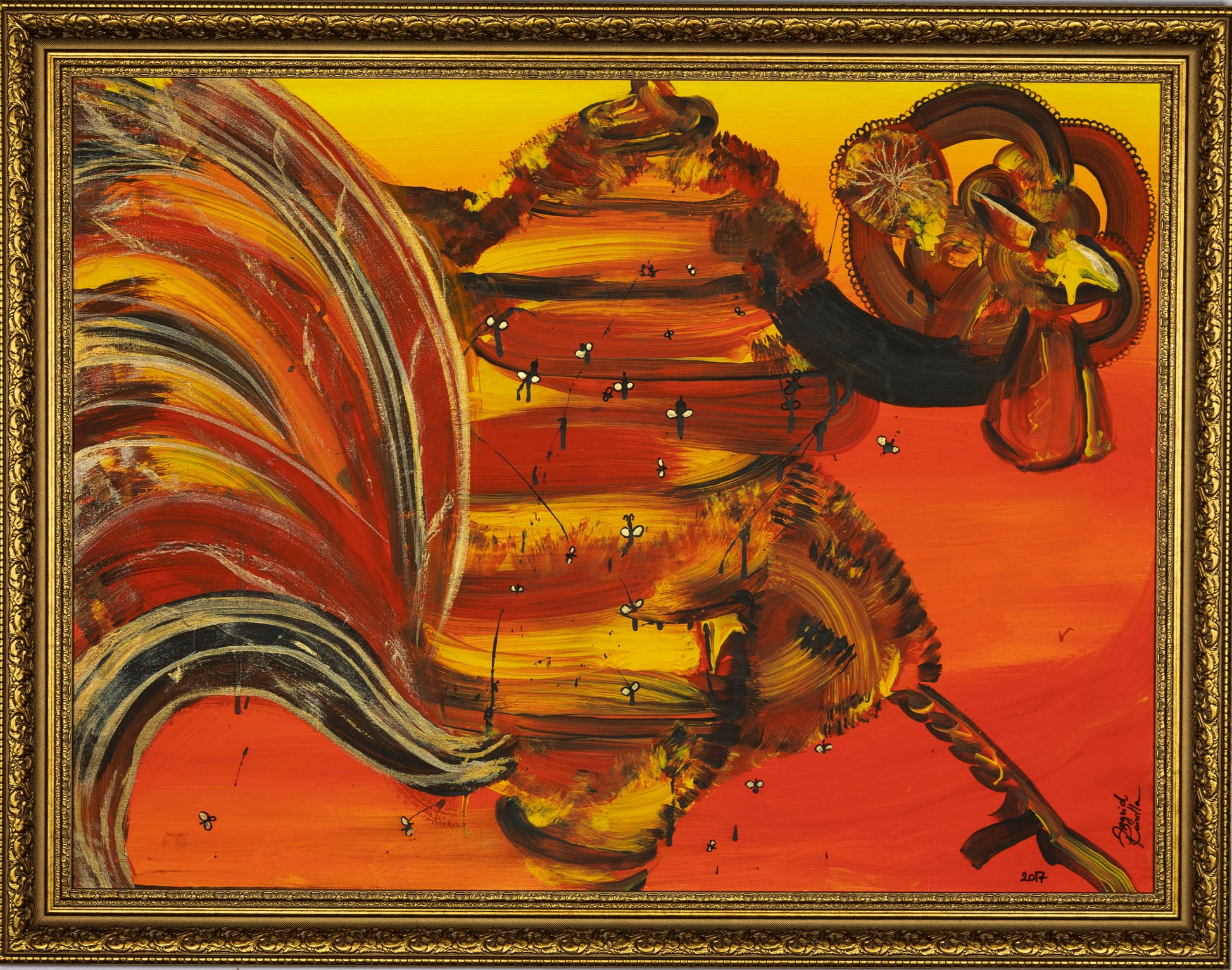 Discover the breathtaking beauty of "Golden Hour" with this bold 60 x 80 cm acrylic painting. Turkey is walking on sunset with bees.