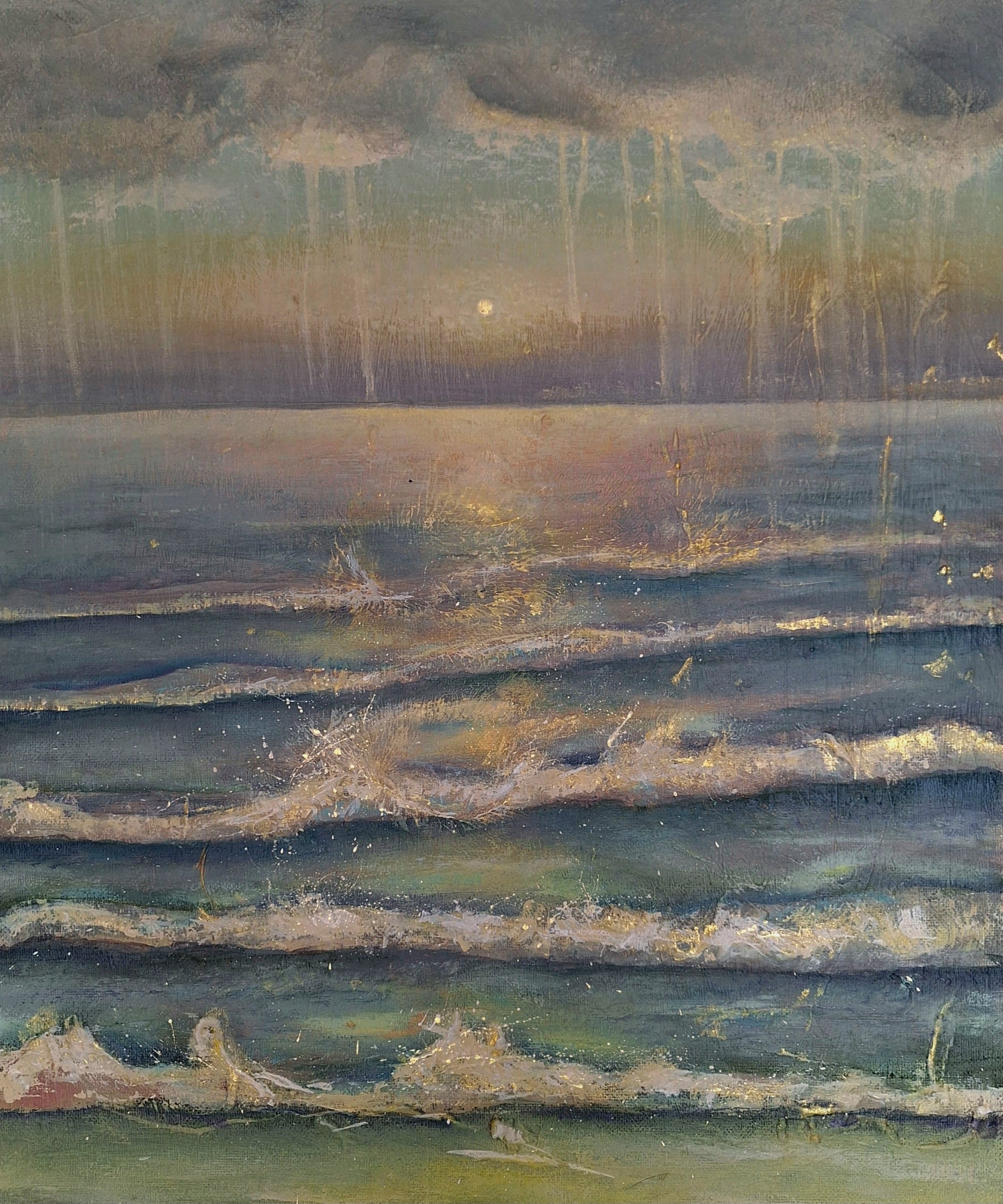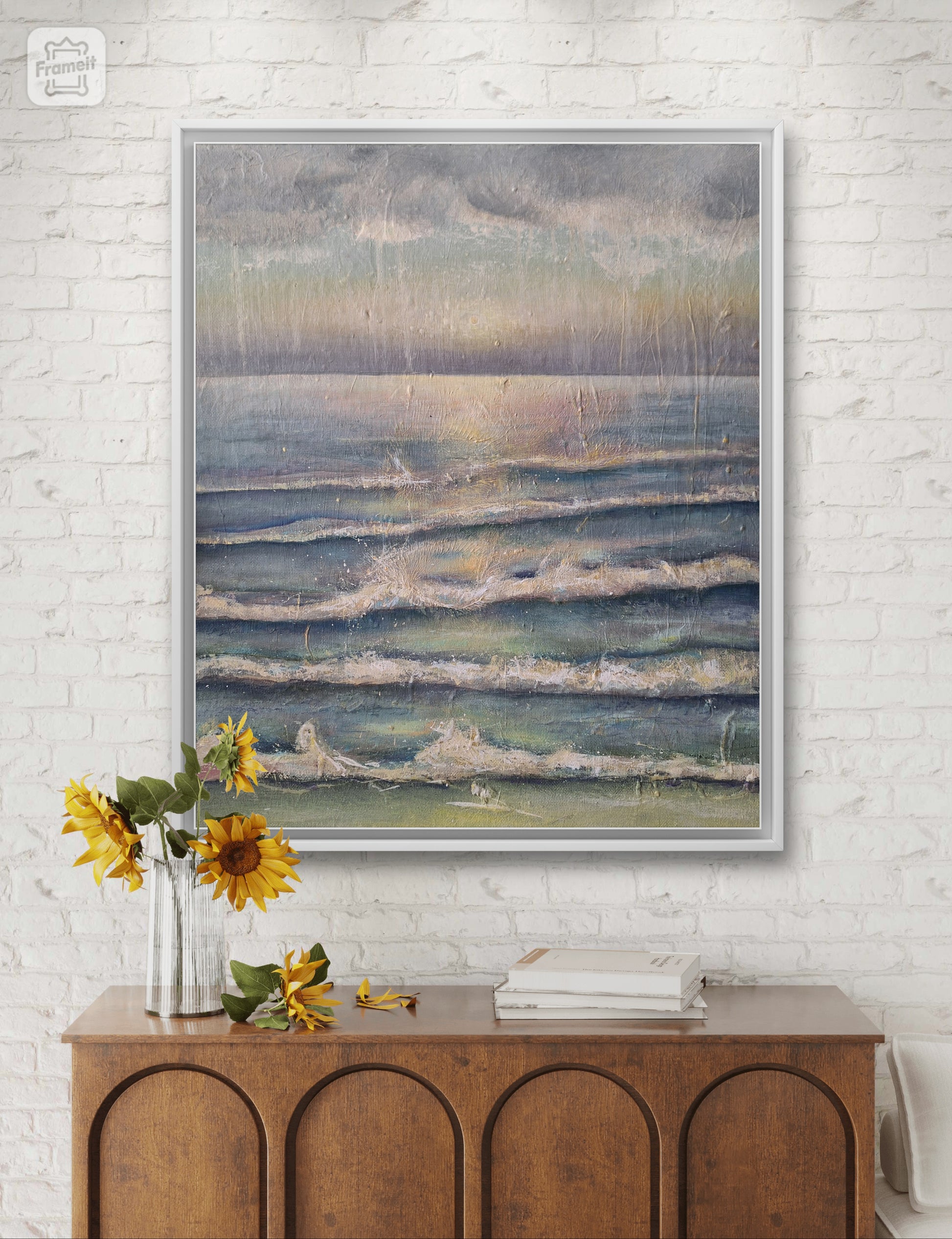 Experience the magic of Ingrid's art with Golden Rain. This acrylic painting slowly reveals its beauty like quiet whispers of a secret. Let it enchant you with its delicate blossoms, bestowing upon you a unique gift and a weapon against the mundane. Frame is illustrative.