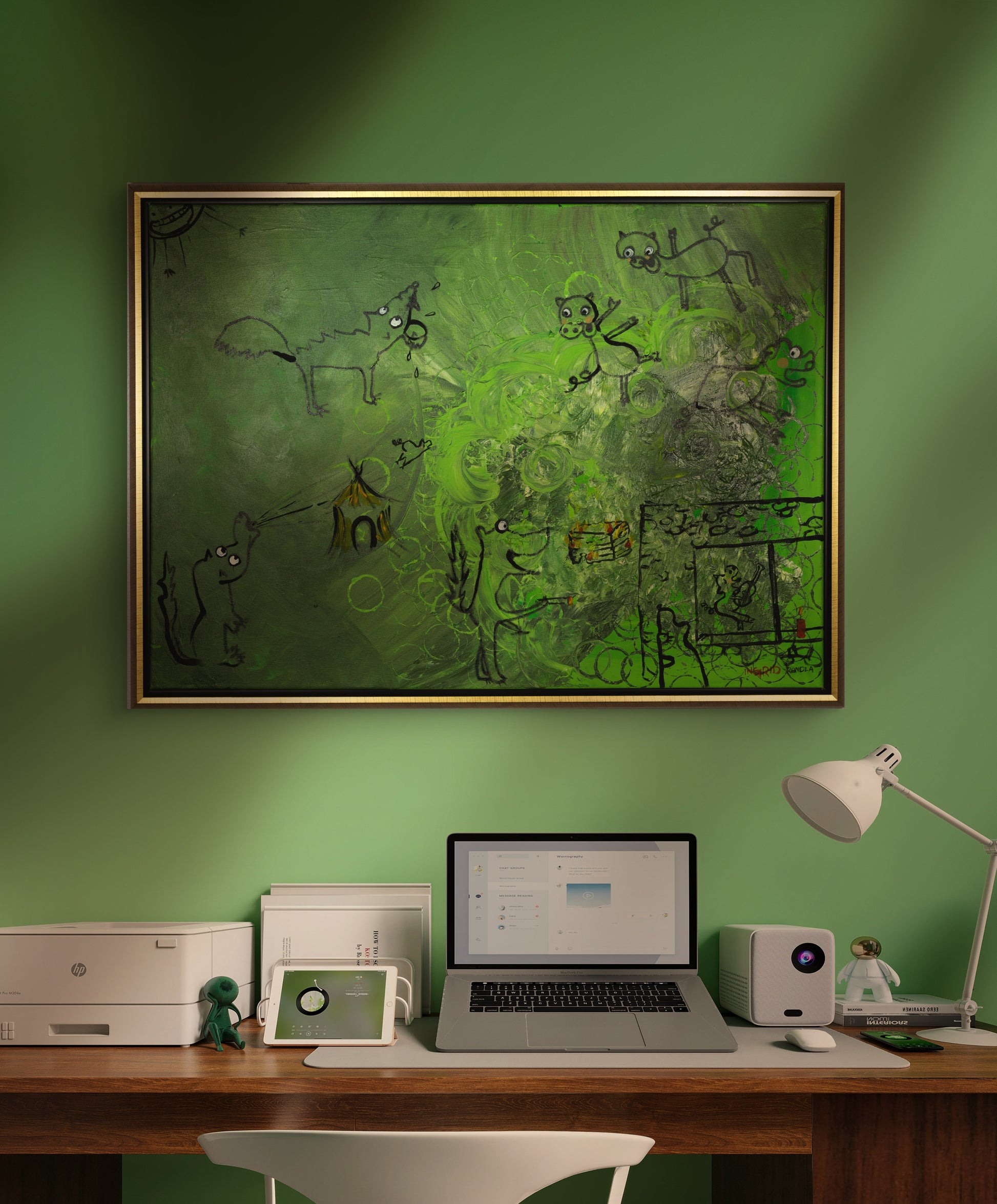 Immerse yourself in the playful world of "Smart Decisions". This vivid acrylic painting depicts a group of piggies and piglets engaging in decision-making. Through the clever use of masks, each character represents a different aspect of choice. Own a timeless piece that ignites discussions on the importance of critical thinking.