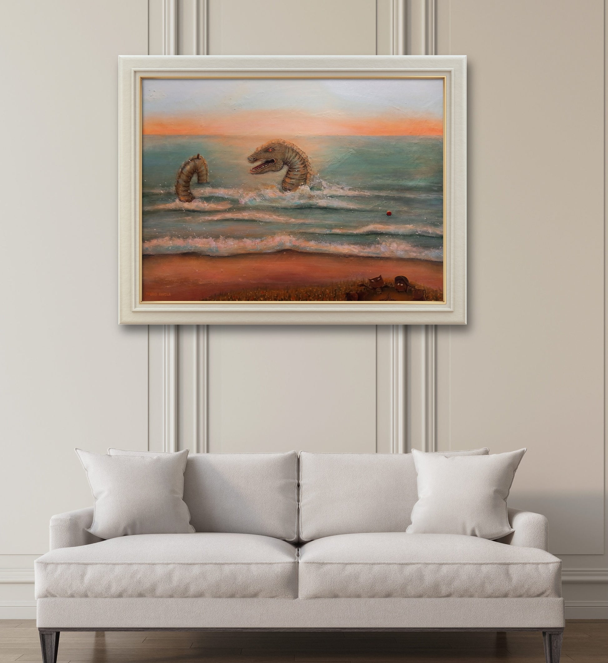 "The Deal" is a stunning painting that measures 50 x 70 cm. It is created using a unique combination of oil and acrylic on canvas, resulting in a dynamic and visually captivating texture. With its expertly crafted frame (illustrative here), this piece is a playful addition to any space.